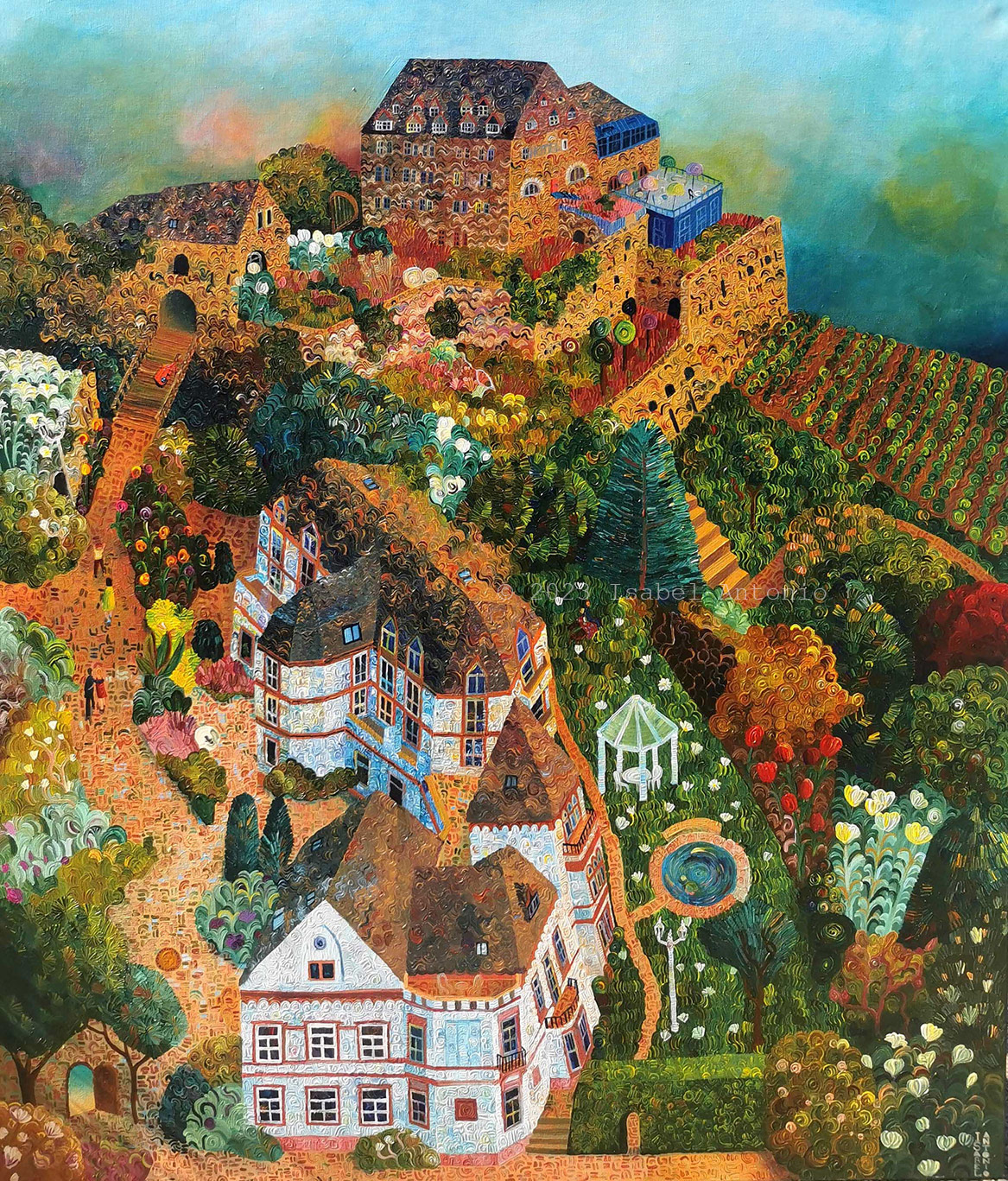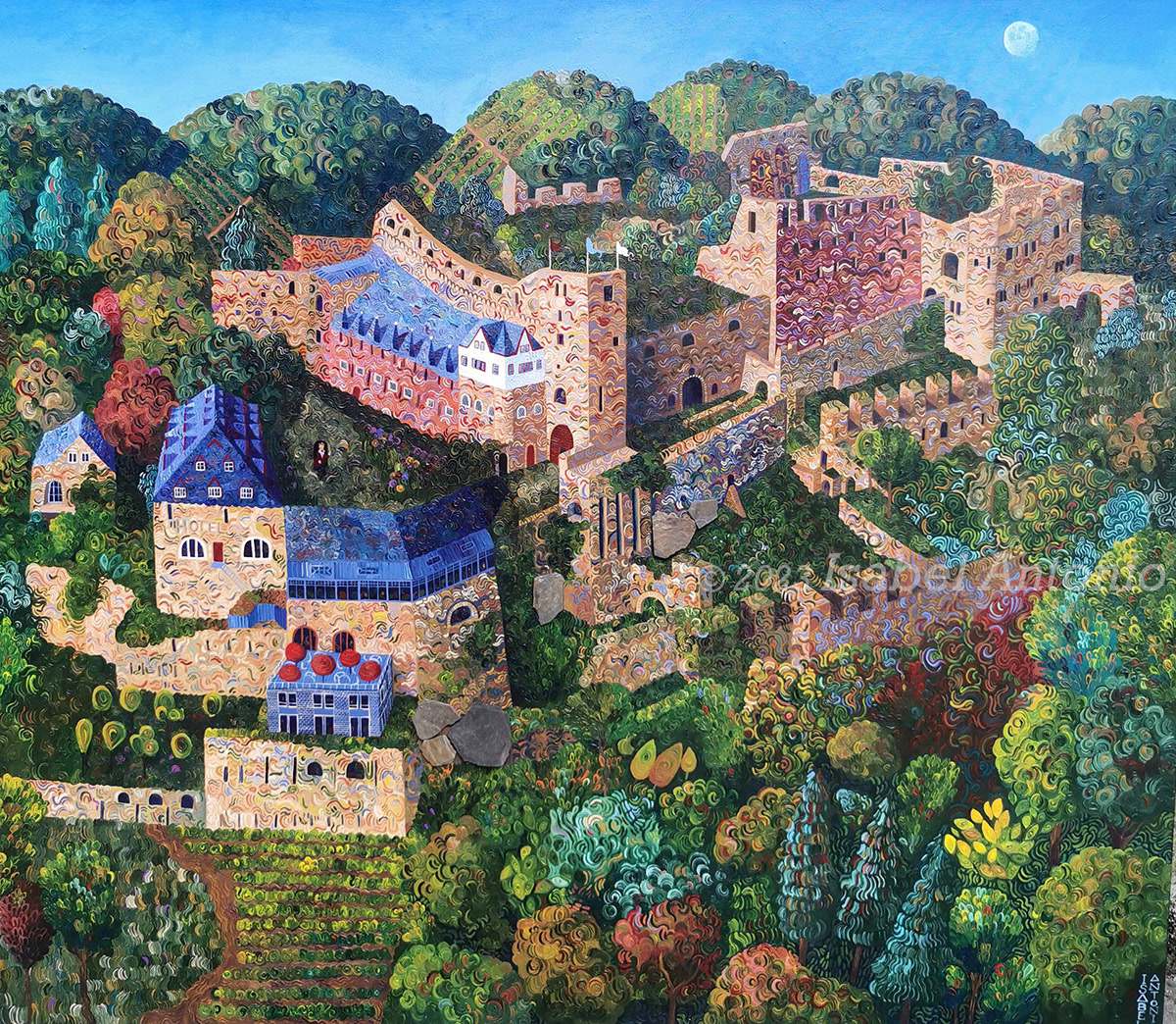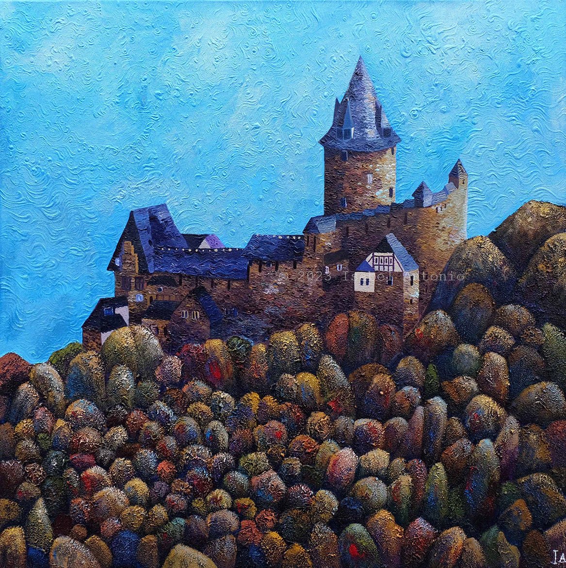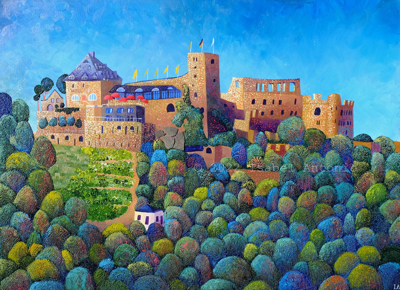 Schloss Rheinfels (Mai 2023), Acryl auf Leinwand, 140 x 120 cm, Auftragsarbeit